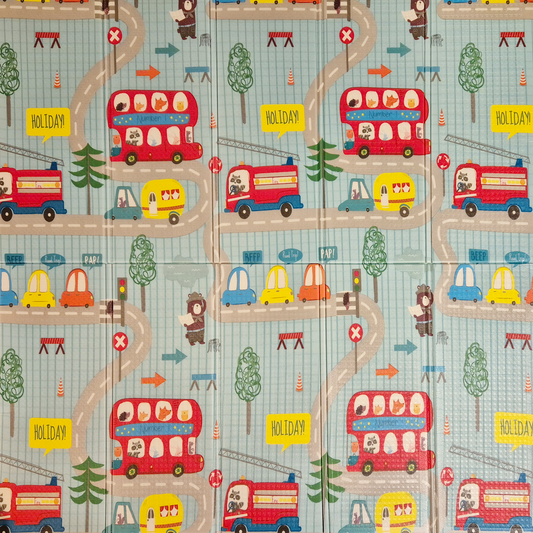 Sklopiva dvostrana podloga za igru i puzanje - Plave Ceste i Veselo Društvo 180x120 cm