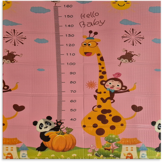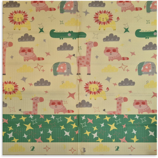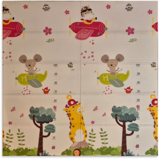 Sklopiva dvostrana podloga za igru i puzanje - Šaljiva Žirafa i Zoo Kolaž 180x120 cm