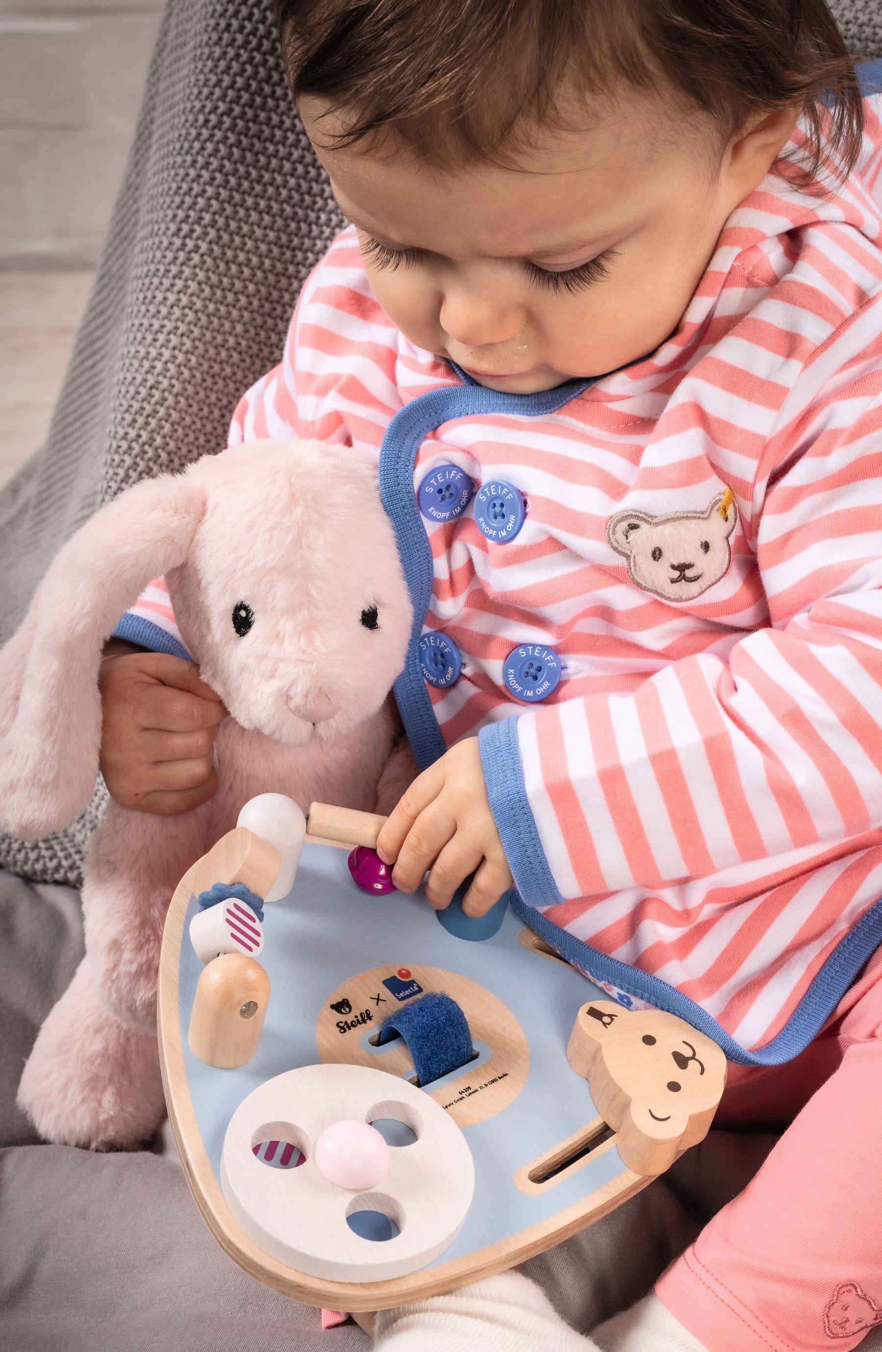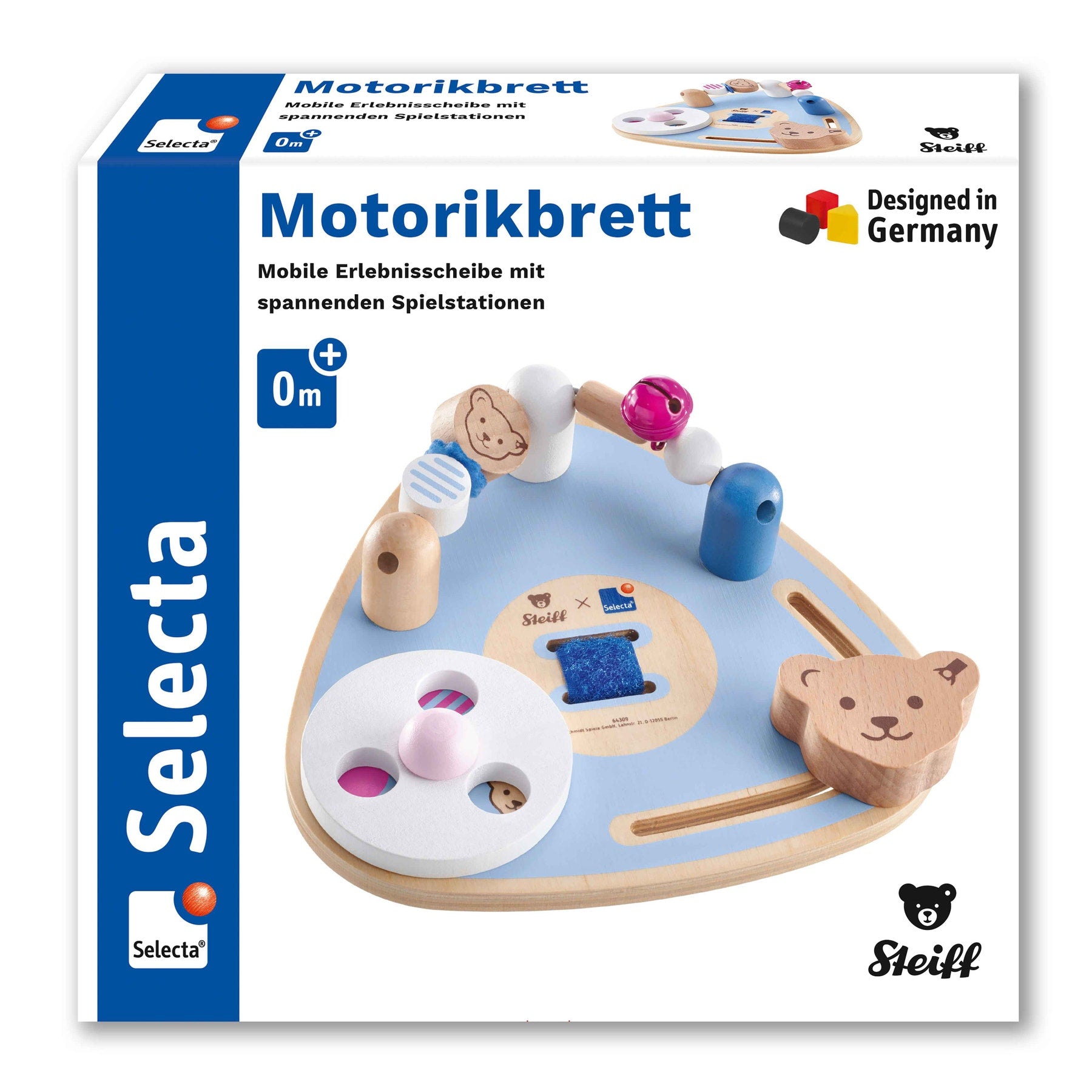 Schmidt Selecta drvena senzorna ploča osmišljena je kako bi bebama pružila ranu stimulaciju kroz igru i istraživanje. Na ploči se nalaze brojni rotirajući, klizni i pomični elementi koji potiču znatiželju te ciljano razvijaju finu motoriku i koordinaciju ruka–oko. Svaki pokret donosi novo iskustvo, potičući dijete na ponavljanje i učenje kroz igru. Zahvaljujući čvrstoj i izdržljivoj izradi, ova senzorna ploča idealna je i za korištenje kod kuće i na putovanju. Funkcionalan i atraktivan dizajn prilagođen je malim rukama, dok kvalitetni materijali osiguravaju sigurnu i dugotrajnu zabavu već od najranije dobi.