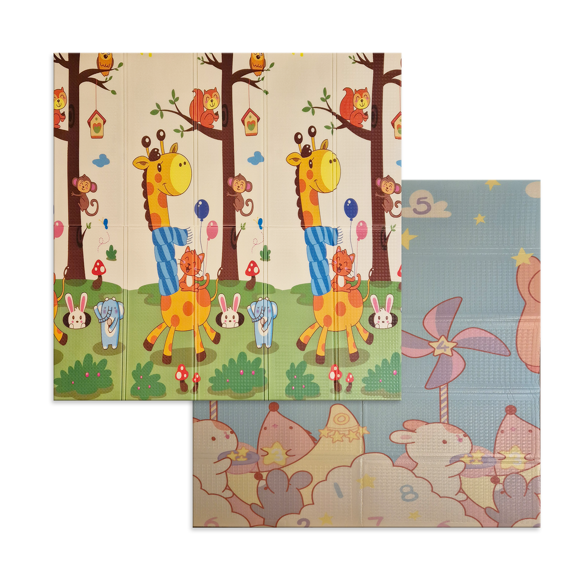 Sklopiva dvostrana podloga za igru i puzanje - Šaljiva Žirafa i Nebeske Brojalice 180x120 cm