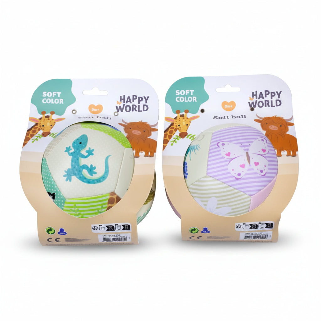 Mekana lopta za bebe Happy World idealna je prva igračka za najmlađe. Izrađena od mekanog tekstila i ukrašena raznobojnim motivima, lopta potiče bebe na dodirivanje, hvatanje i istraživanje kroz igru. Lagana je i prilagođena malim ručicama, što je čini sigurnom i ugodnom za igru već od rođenja.