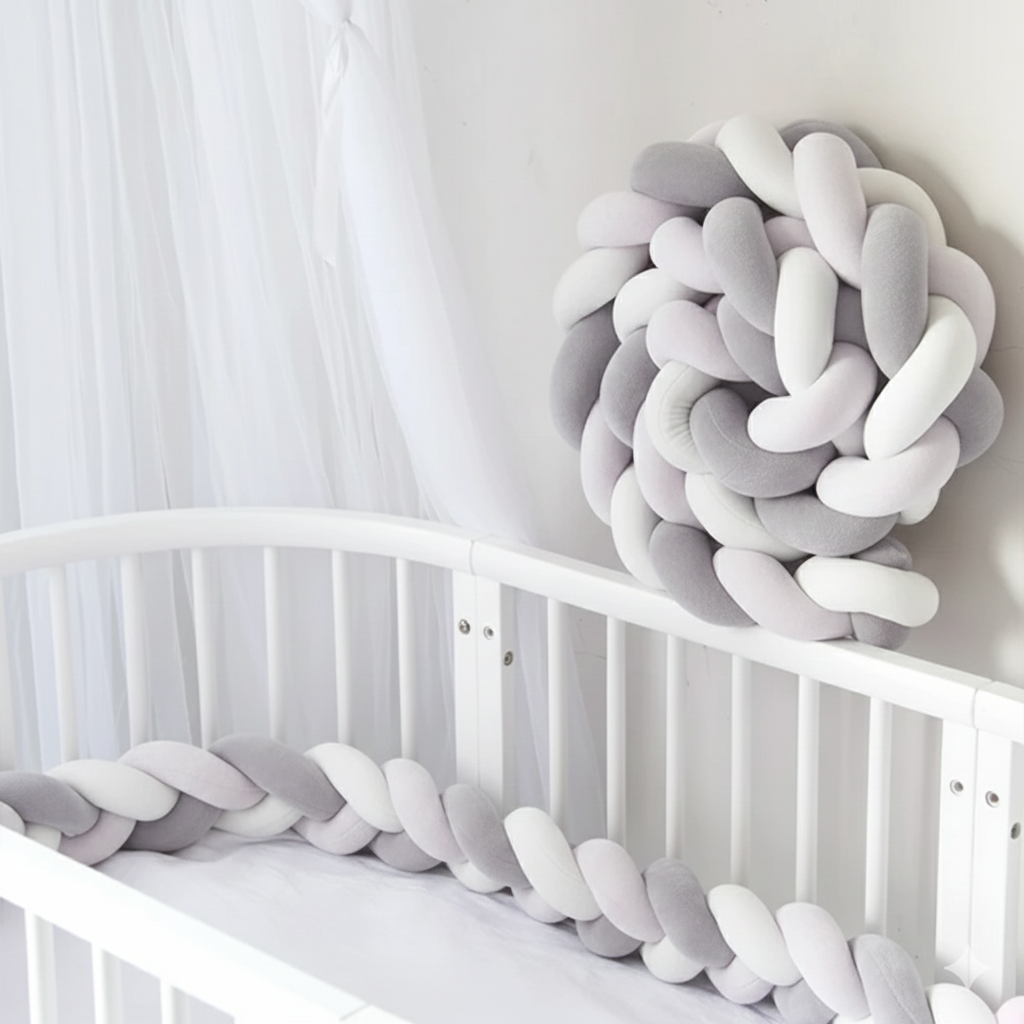 Pleteni jastučić koji savršeno spaja udobnost, estetiku i sigurnost za vašu bebu. Pored predivnog dizajna, jedinstvenog oblika pletenice i umirujućih boja, ovaj zaštiti jastuk savršeno će se uklopiti u baš svaki prostor. Mekan i ugodan materijal pružit će zaštitu od udaraca te ga vrlo jednostavno možete uklopiti u bilo koji dječji krevetić.